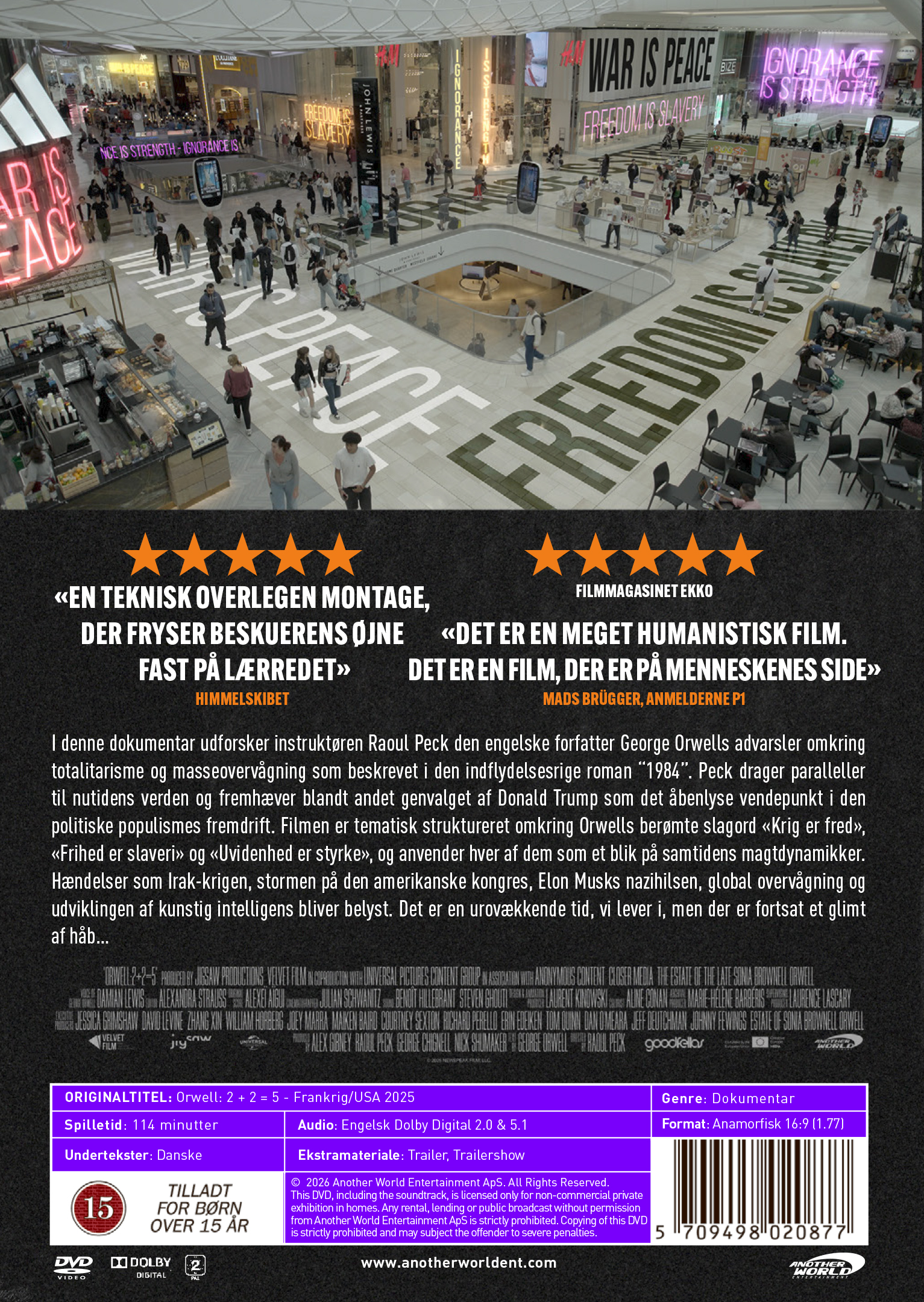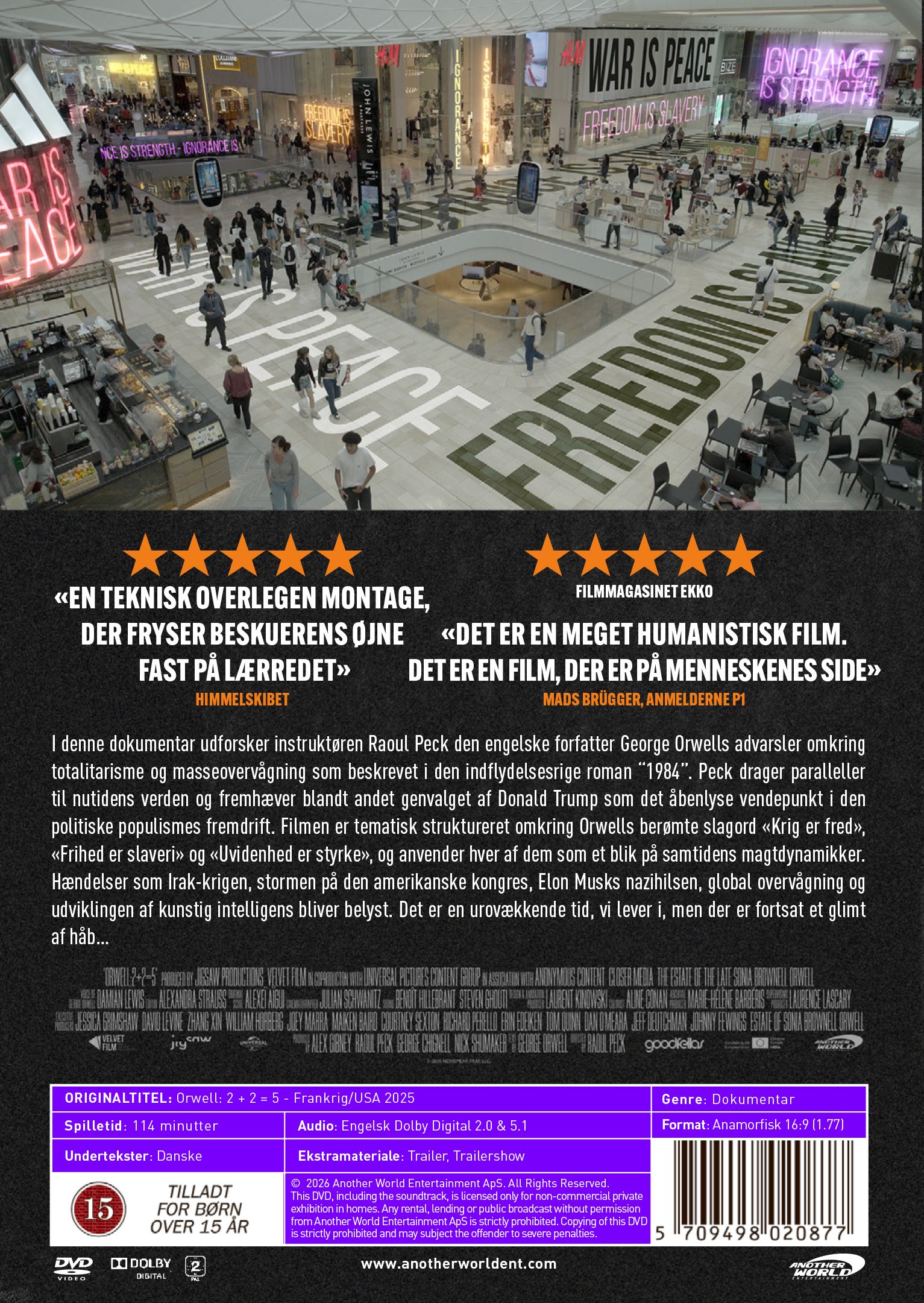 I denne dokumentar udforsker instruktøren Raoul Peck den engelske forfatter George Orwells advarsler omkring totalitarisme og masseovervågning som beskrevet i den indflydelsesrige roman “1984”. Peck drager paralleller til nutidens verden og fremhæver blandt andet genvalget af Donald Trump som det åbenlyse vendepunkt i den politiske populismes fremdrift. Filmen er tematisk struktureret omkring Orwells berømte slagord «Krig er fred», «Frihed er slaveri» og «Uvidenhed er styrke», og anvender hver af dem som et blik på samtidens magtdynamikker. Hændelser som Irak-krigen, stormen på den amerikanske kongres, Elon Musks nazihilsen, global overvågning og udviklingen af kunstig intelligens bliver belyst. Det er en urovækkende tid, vi lever i, men der er fortsat et glimt af håb…