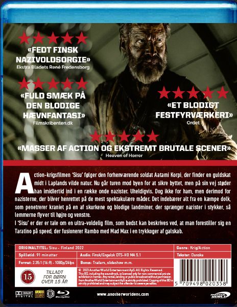 Action-krigsfilmen ‘Sisu’ følger den forhenværende soldat Aatami Korpi, der finder en guldskat midt i Laplands vilde natur. Nu går turen mod byen for at sikre byttet, men på sin vej støder han imidlertid ind i en række onde nazister. Uheldigvis. Dog ikke for ham, men derimod for nazisterne, der bliver henrettet på de mest opfindsomme måder. Det betyder alt fra en kæmpe dolk, som penetrerer kraniet på en af skurkene, videre til blodige landminer, der sprænger nazister i stykker, så lemmerne flyver til højre og venstre.